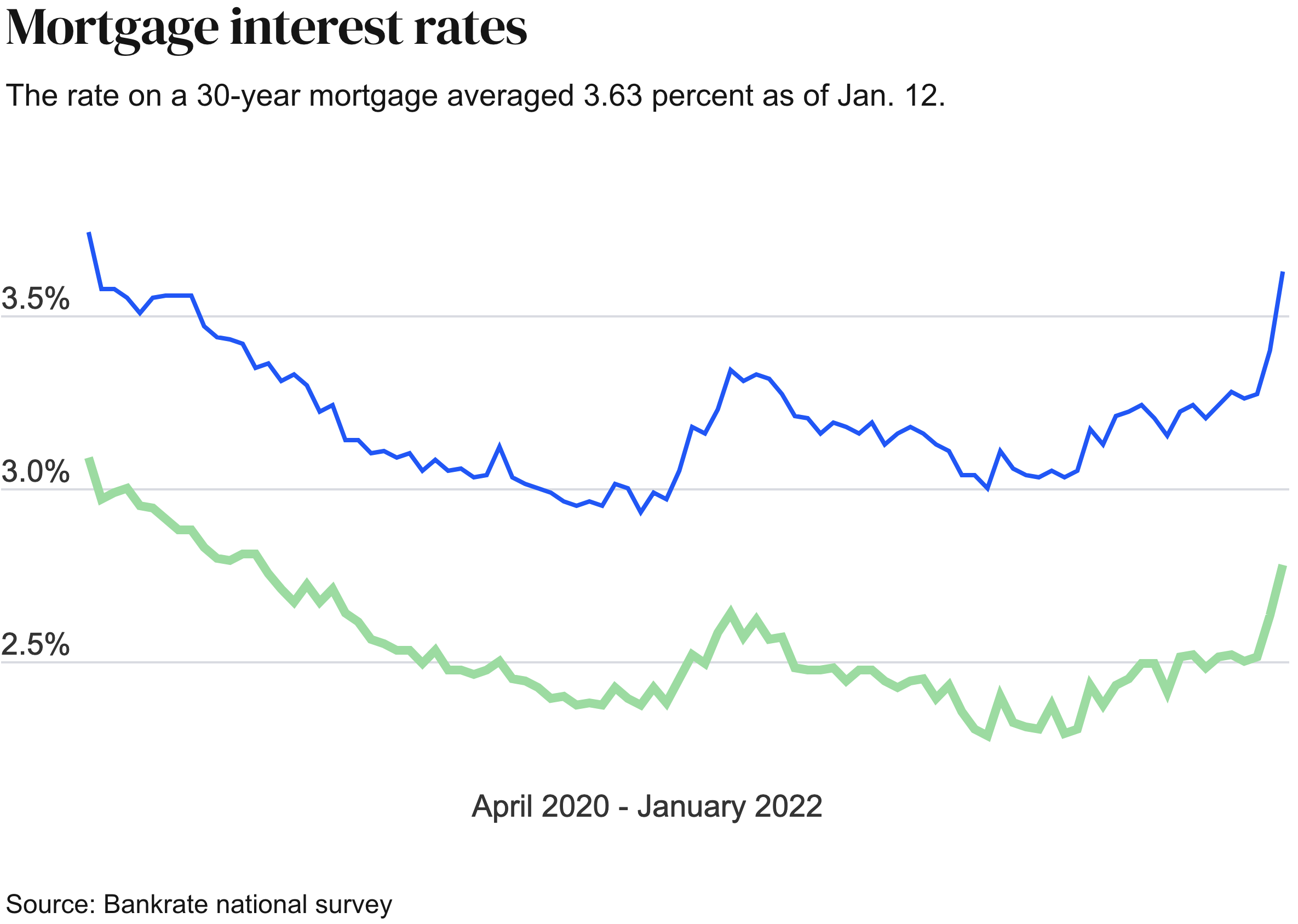 If you follow the news, especially in the financial sector, you saw that mortgage rates increased last week. According to Bankrate's weekly poll of large lenders, the average rate on 30-year mortgages increased to 3.85 percent from 3.76 percent last week. Experts predict that rates will continue to rise from their all-time low of 2.93 percent in January 2021. The benchmark 30-year fixed-rate mortgage was 2.97 percent a year ago. The rate was 3.63 percent four weeks ago. For this week, the 30-year fixed-rate average is 0.92 percentage points higher than the 52-week low of 2.97 percent.